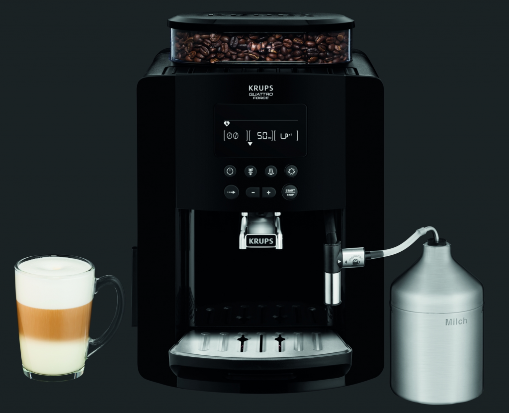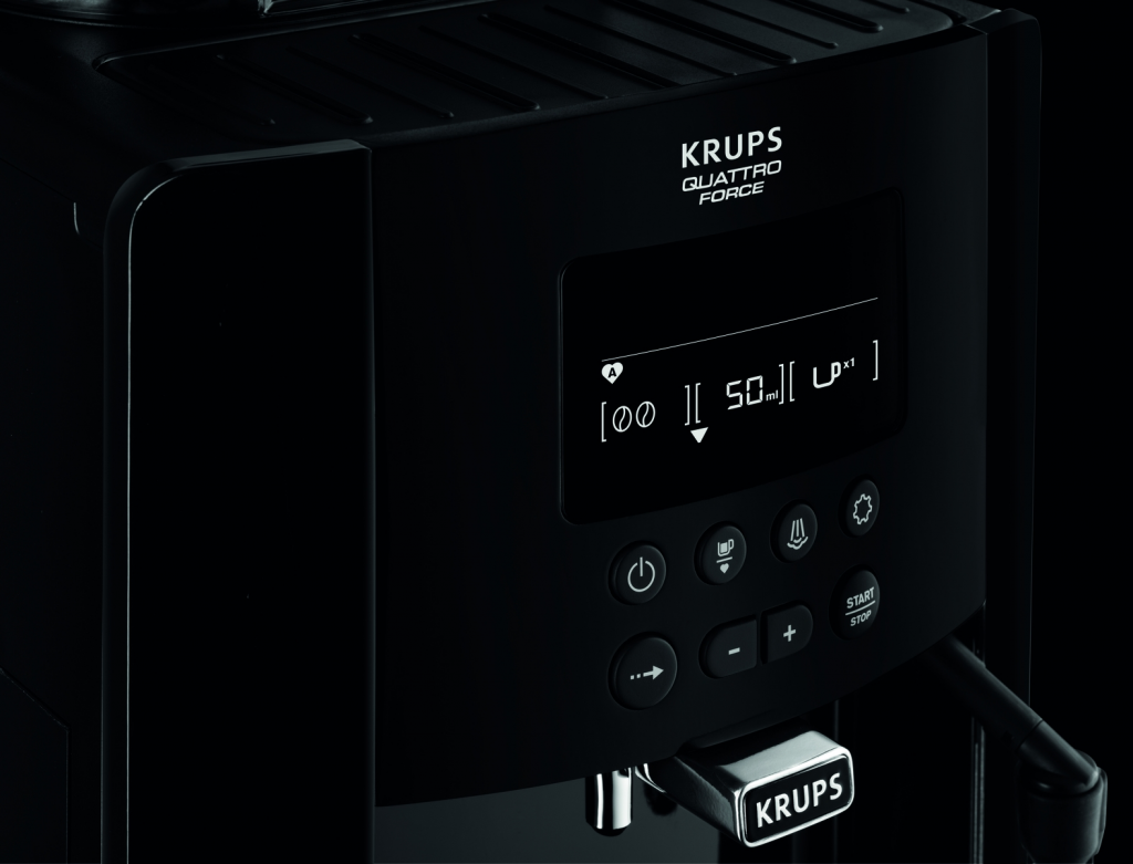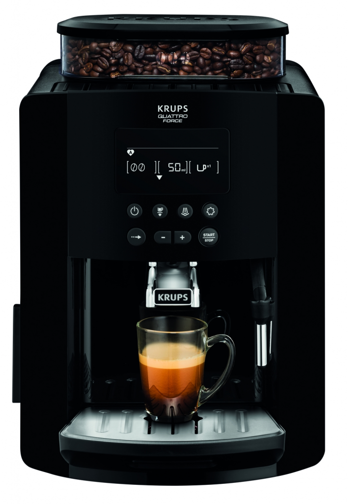 Независимо дали обичате силно еспресо или сте любител на дълфите кафе специалитети той е тук, за да ви помогне в приготвянето им. Системата KRUPS Quattro Force оптимизира всяка стъпка в приготовянето на вашата кафенапитка за професионално качество и изключителен вкус. Воден резервоар с голяма вместимост от 1.5л  и контейнер за кафе на зърна, побиращ 260 гр ви дават възможност да приготвяте еспресо след еспресо без необходимосто от допълване. С възможност да избирате от 3 темературни настройки и 3 степени на смилане на кафето за персонализирано изживяване и гарантирано перфекти резултати всеки път.  Естествен и интуитивен контролен панел с много голям LCD екран с лесен и удобен за ползване интерфейс ви гарнатират безпроблемна употреба. А режимът за любими напитки ви позволява да запазвате своите предпочитания. Комкатен и елекгантен този кафеавтомат е идеално попълнение към всяка кухня.
