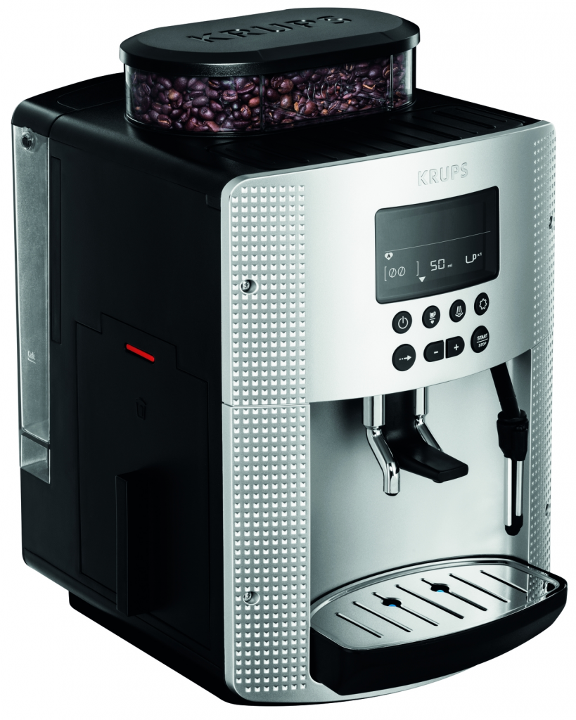 С автоматичната машина за еспресо Essential Krups се насладете на перфектно балансиран аромат на кафе и еспресо, получено от кафеното зърно до чашата.